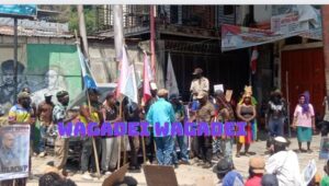 Jayapura, (WAGADEI) – Dalam rangka memberikan dukungan penuh kepada United Liberation Movement For West Papua (ULMWP) sebagai wadah pemersatu bangsa, rakyat West Papua di Jayapura menggelar aksi demonstrasi secara damai dan bermartabat di bilangan Putaran Taksi Perumnas III Waena, kota Jayapura pada Selasa, (22/8/0223).