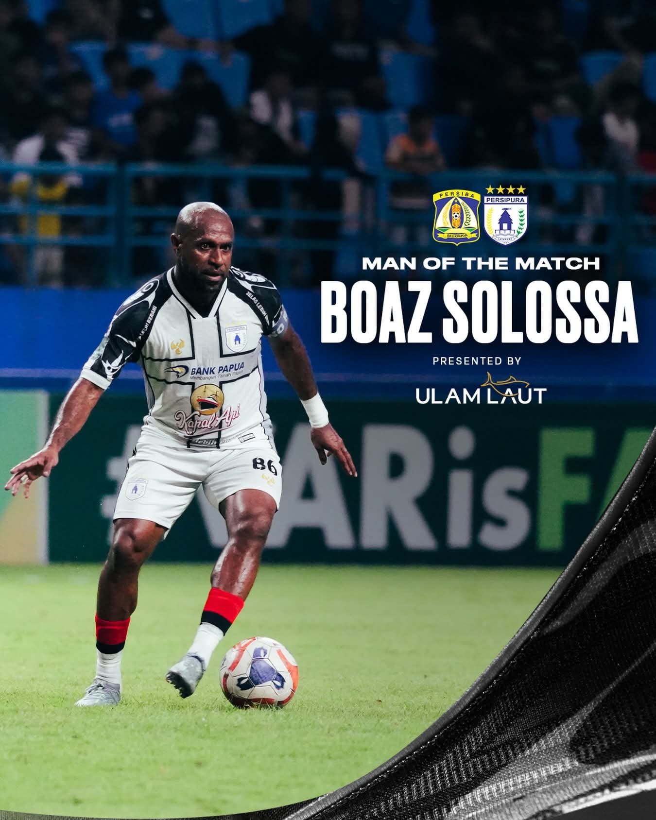 Boaz Solossa jadi aktor dalam kemenangan 0-1 untuk tim Mutiara Hitam itu. Gol dramatis sang legenda pesepakbola Indonesia Boaz Solossa, di masa injury time memastikan kemenangan Persipura untuk tetap kokoh di papan atas Liga 2 Indonesia musim 2025/2026.
